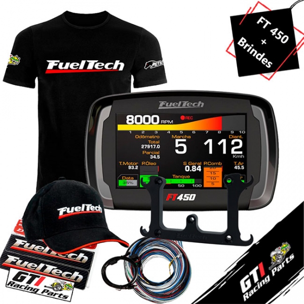 - 1 Kit brindes Exclusivo ( 1 Camiseta Promocional Preta Fueltech / GTI Racing Parts + Boné FT + Adesivos da Loja)