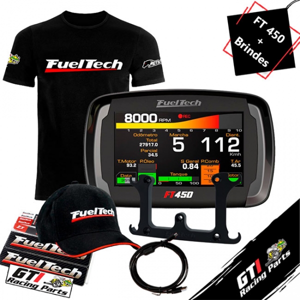 - 1 Kit brindes Exclusivo ( 1 Camiseta Promocional Preta Fueltech / GTI Racing Parts + Boné FT + Adesivos da Loja)
